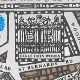 Eagle Ironworks was a company in Lyra's world. It was founded in 1812, partially to cast Thunderer cannon for Her Majesty's Navy. It stood behind Juxon Street and bordered the Oxford Canal. Many workers at Eagle Ironworks lived on Juxon Street. Tours of the Ironworks could be arranged by appointment. They included a historical introduction and a visit to the small museum there.[1]