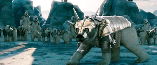 When Lyra and the children were ready to escape, Iorek helped them by attacking the Tartar guards that were stationed around the site. He hurled himself past the children as they escaped and at groups of the tartars, killing them quickly before joining back with the gyptians. Many of the children were shocked and scared by his massive form. After Lyra was taken by Marisa Coulter and then taken back by the gyptians, Iorek got into Lee's balloon with Roger Parslow and Lyra and they were pulled away by a group of witches.[7]