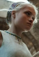 Lyra was witness to this event from the tower. When Angelica looked up, they locked eyes and Paolo said that the children were going to kill Lyra and Will.[3] Meanwhile, Paradisi told Will he was the new bearer and taught him to use the knife, before dismissing them both and committing suicide. The following day, Angelica, Paolo and the boy that Will had pushed to the ground to rescue the cat rallied the other forty or fifty children to attack the pair and reclaim the knife, chasing them from the white villa, where they were staying, to the Belvedere tower. After the staircase inside was cut by Will, the group began to climb onto the roof. When Lyra knocked a boy in the side with a bar from the rail, Angelica scrambled up to take his place. The mob was eventually stopped by the appearance of Serafina Pekkala's dæmon, Kaisa, and other witches as the children ran away in fear.[4]