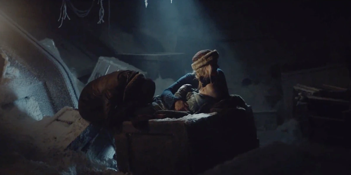 After finally arriving at the Arctic village, Lyra approaches the fish-house, extremely scared, leaving Iorek at the entrance. Upon entering and passing through the rows of fish, she spies a boy lying there and goes up to him, recognising him as Billy but sees he doesn't have a dæmon. Shocked, she takes him to the gyptian camp in the hope of getting him help. Upon seeing him, Ma immediately takes him into a nearby tent to get him warm, Tony Costa follows her, but Lyra is held back by Lee who takes her to get some sleep.